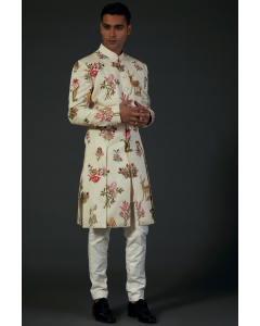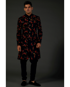 Sherwani is a traditional Indian knee-length and close-fitted garment worn over a Kurta and a churidar, a dhoti, a pajama, or a salwar at the bottom. The long coat-like garment emerged on the fashion scene ever since the Nawabs and aristocracy wore them during 19th century British India. Rohit Bal sherwanis for men are drawn from a page in history to recreate the royal Moghul period. Today, this buttoned-down coat in the front has become a fashion staple on several occasions, including Indian festivals and weddings. Rohit Bal's designer Designer Sherwanis make a fashion statement when you wear them. If you are ready to tie the knot, it is time to go shopping for the big fat Indian wedding. Whether you are a global Indian or a desi Indian, you will need a designer sherwani to wear on your special day. Designer sherwanis are plenty, but there is a handful that really stands apart. Among them are the designer sherwanis from the Rohit Bal collection. The top-rated Indian designer Rohit Bal offers a range of designer sherwanis for grooms and their families to look their stunning best on the wedding day.